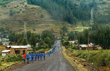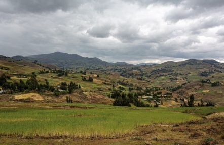 Il cielo blu dell’Etiopia, attorno a lei, incornicia il verde, il giallo, il marrone dei prati. Qualche tetto di fango e lamiera è incastonato tra i terrazzamenti e ci appare ancora molto lontano. La strada, oggi, è appena iniziata.
